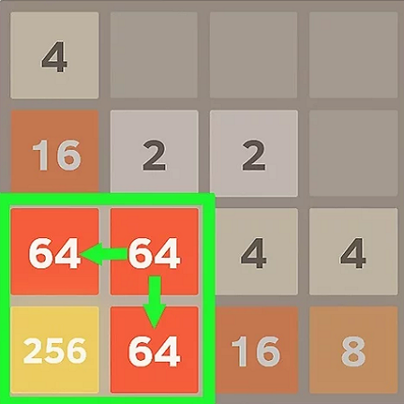 To move the tiles on the grid, you just have to choose a direction (top, right, bottom, or left). All tiles move in the selected direction until they merge with a tile that has the same number or are blocked by tiles with a different number.